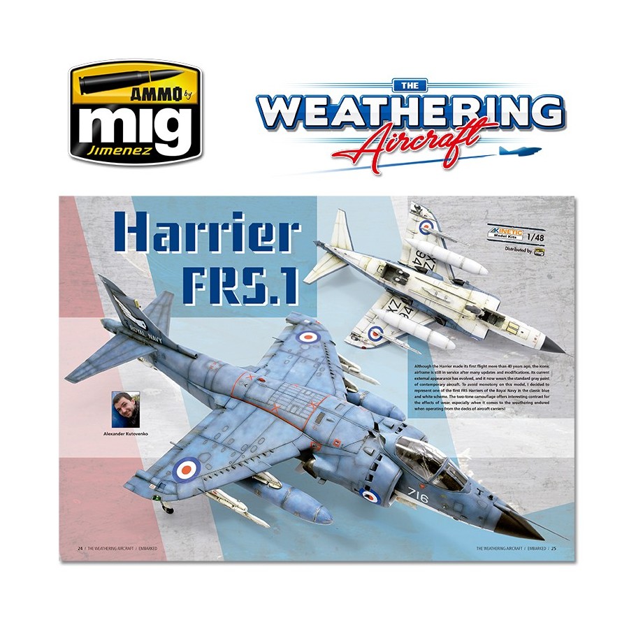 Los aviones embarcados son una fuente de inspiración para los modelistas por la enorme cantidad de efectos y desgastes que se pueden imitar sobre ellos. Nuestros colaboradores nos enseñarán cómo manejar una amplia gama de productos para conseguir los mejores acabados. Para ello, usaremos diferentes técnicas a la hora de representar decoloraciones en los fuselajes, restos de sal y óxido, humedad, desconchones, acumulaciones de grasa y suciedad... Por supuesto, no nos hemos olvidado de pinturas parcheadas o arañazos profundos sobre superficies metálicas e imprimaciones. A bordo de este número encontrarás aviones y helicópteros de distintas épocas y países que estamos seguros te harán pensar en nuevos proyectos.