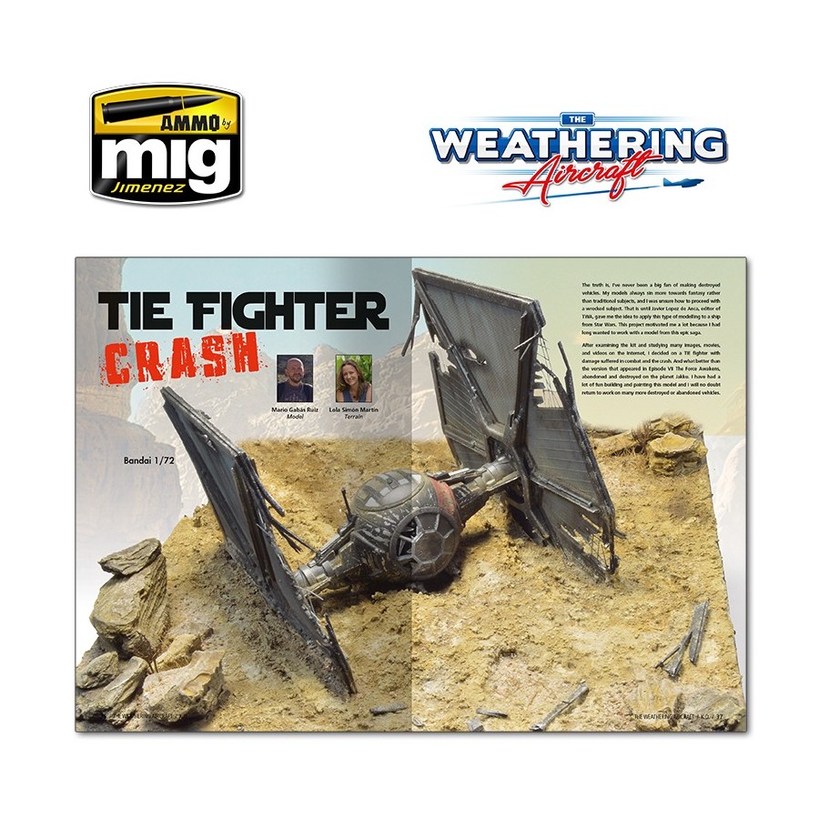 Por supuesto, a lo largo de los procesos de pintura veremos como imitar los efectos de desgaste producidos durante el accidente o por el paso del tiempo. Hemos querido mostrar diferentes épocas y escenarios. Esto supone que los materiales con los que se construían los aparatos y los efectos que se producen sobre ellos son distintos, incluso algunos llegados de una galaxia muy, muy lejana. Hemos contado con los mejores colaboradores, cada uno de ellos aportando un estilo personal que os ayudará a disfrutar de este tipo de proyectos.