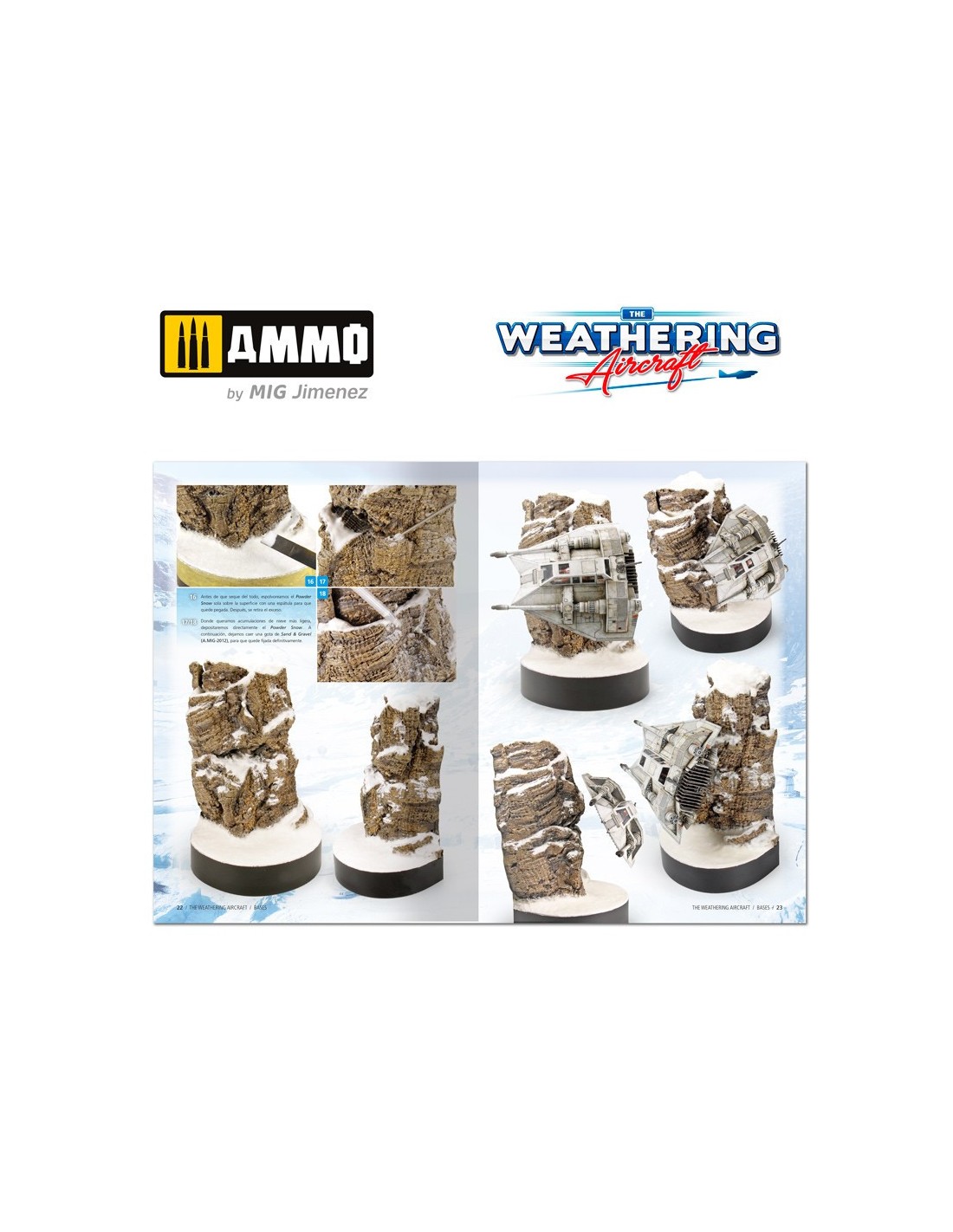 La creación de bases para nuestros aviones está cada vez más extendida entre los aficionados a la aviación. Además de proteger la pieza y poder transportarla con facilidad, principalmente nos ayuda a contar una historia alrededor de la maqueta, algo que no siempre se puede lograr solo con el trabajo de pintura. Por si esto fuese poco, las bases nos abren la posibilidad de sumergirnos en otros mundos como la escenografía o la pintura de figuras y aprender de nuestros colegas. En este número, ponemos en práctica todo lo necesario para representar terrenos, vegetación, accesorios, etc. Empleamos diferentes técnicas y productos para conseguir variedad de escenarios como desierto, nieve o pistas de portaaviones entre otros.