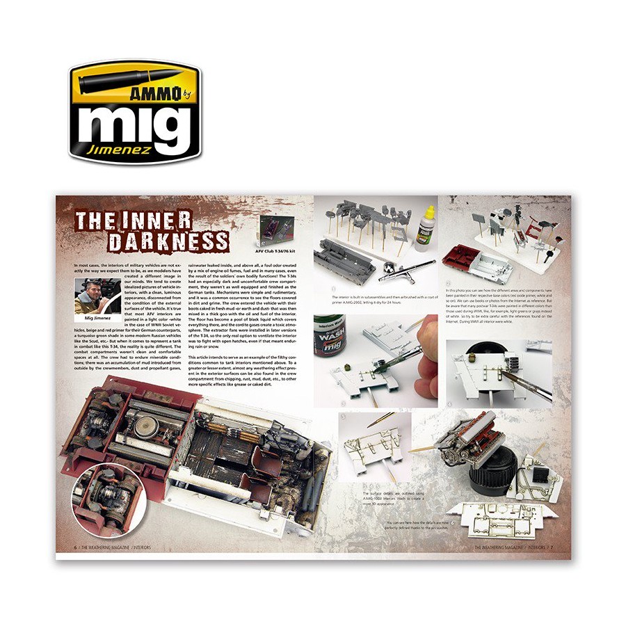 The Weathering Magazine es la única revista dedicada por completo a la pintura y técnicas de envejecido en maquetas y figuras a escala. Este número está dedicado a los diferentes tipos de interiores que se pueden encontrar en tanques, aviones, submarinos ¡y hasta el interior de un AT-ST de Star Wars! Como siempre, esta revista explica "paso a paso", con artículos detallados, cómo realizar cada técnica ilustrando el proceso a través de fotos de alta calidad y descripciones concisas efectuadas por algunos de los mejores modelistas del mundo.