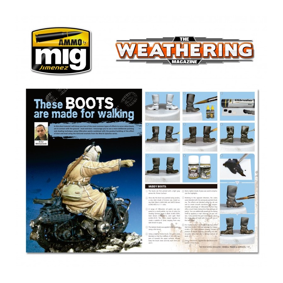 En este número hemos pensado cómo mostrarte, de la manera más didáctica posible, un amplio conjunto de artículos enfocados a representar todos los efectos que pueden apreciarse en superficies de contacto, como ruedas, orugas... o ¡botas! A partir de los extraordinarios trabajos realizados por nuestros colaboradores, verás las técnicas más innovadoras y adecuadas para cada caso, de modo que puedas ambientar de manera realista tus vehículos o integrar diversos elementos en función del tipo de terreno. Se trata de un aspecto fundamental para todo modelista y muchos descubriréis una nueva dimensión a la hora de situar vuestros modelos preferidos en un ambiente determinado, al mismo tiempo que se adapta el desgaste a las peculiaridades del entorno físico. Pero no te queremos adelantar todo el contenido porque ¡hay mucho más! Como es habitual, The Weathering Magazine se compone de una serie de artículos formados por detallados paso a paso, que explican cómo ejecutar cada técnica o utilizar cada producto con facilidad gracias a imágenes de alta calidad y descripciones concisas.