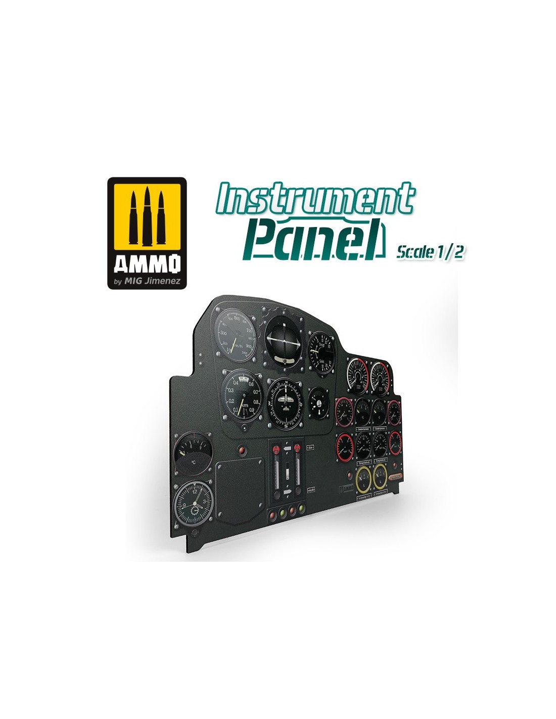 AMMO Instrument panel of the Messerschmitt Me 262, the first jet fighter to serve in combat during World War II. The busy display of this innovative aircraft indicates the advanced level of systems required by this ground breaking aircraft. Reproduced to an exceptional level of detail in both 1/1 and 1/2 scale.