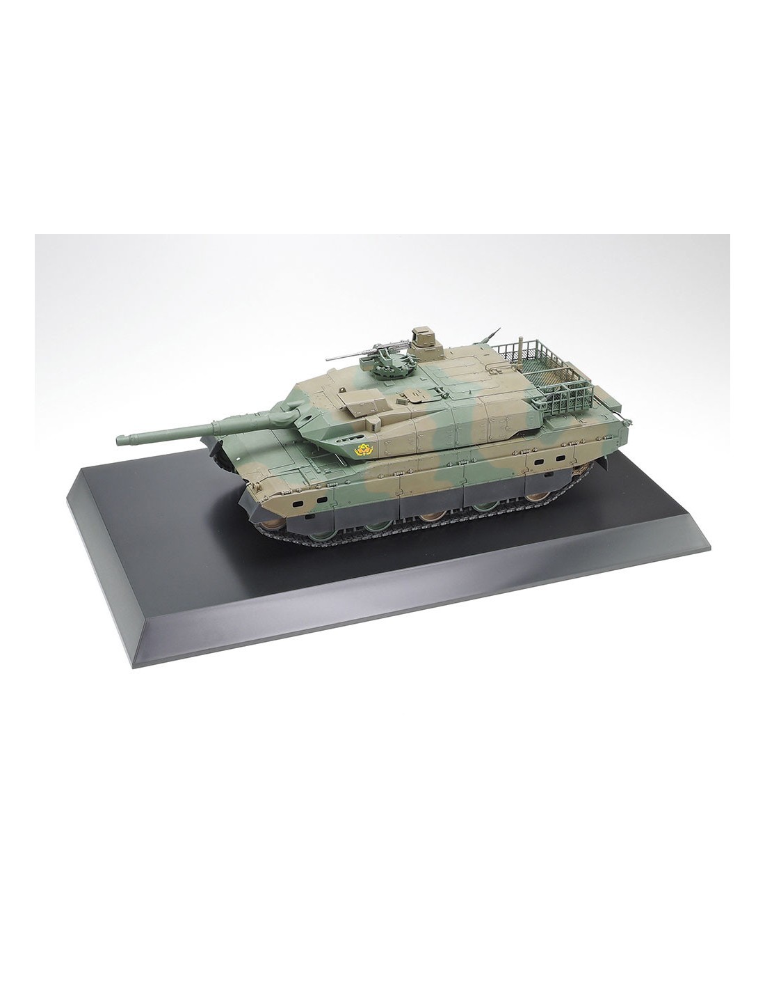 Este sencillo pero versátil soporte puede utilizarse no sólo para exponer las obras maestras de modelismo terminadas, sino también como base para crear emocionantes dioramas: la superficie de resina de estireno puede pintarse con pinturas plásticas para modelismo y pinturas de textura para dioramas. La base puede alojar incluso modelos de carros de combate más grandes de la serie Military Miniature a escala 1/35, como el Tipo 10 y el Tipo 90 de la JGSDF. Un borde trasero cuadrado también permite unir 2 bases y mostrar modelos más grandes, como se muestra abajo a la derecha.