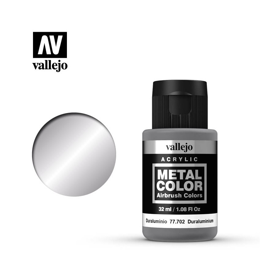 combi-metal-colorIntroducción: Metal Color es una  gama de colores metálicos a base de agua, especialmente diseñados para aerografía. En la elaboración de esta innovadora gama se emplean pigmentos de aluminio de última generación en una formulación específica que confiere a los colores una excepcional resistencia y adherencia sobre plástico y metal. Metal Color se puede aplicar directamente sobre la maqueta sin necesidad de una imprimación previa aunque es aconsejable, en el caso de fuselajes y componentes de modelos de avión, aplicar una Imprimación Negro Brillante para realzar las características especiales de los tonos de aluminio. La gama de Metal Color está compuesta por 19 referencias, disponibles en frascos de 32ml. con tapón bisagra y cuentagotas.