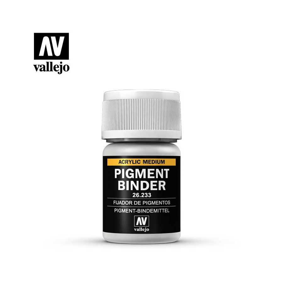 Para fijar los pigmentos a la superficie se emplea una resina acrílica de acabado mate, como nuestro Médium Mate (70.540) o Pigment Binder (26.233) que tiene un secado más lento, facilita simular aguadas de lluvia y nieve, y proporciona más tiempo para manipular el pigmento dentro y alrededor de los detalles de la maqueta.