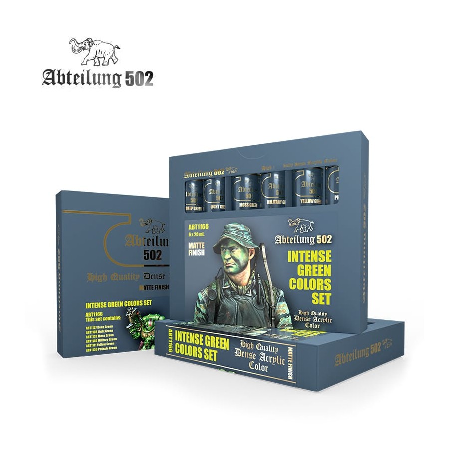 Los tonos verdes son el objetivo de este set. Las combinaciones de los colores incluidos permite realizar diferentes figuras militares, fantásticas o cualquier otra pieza en la cual los tonos verdes tengan importancia.