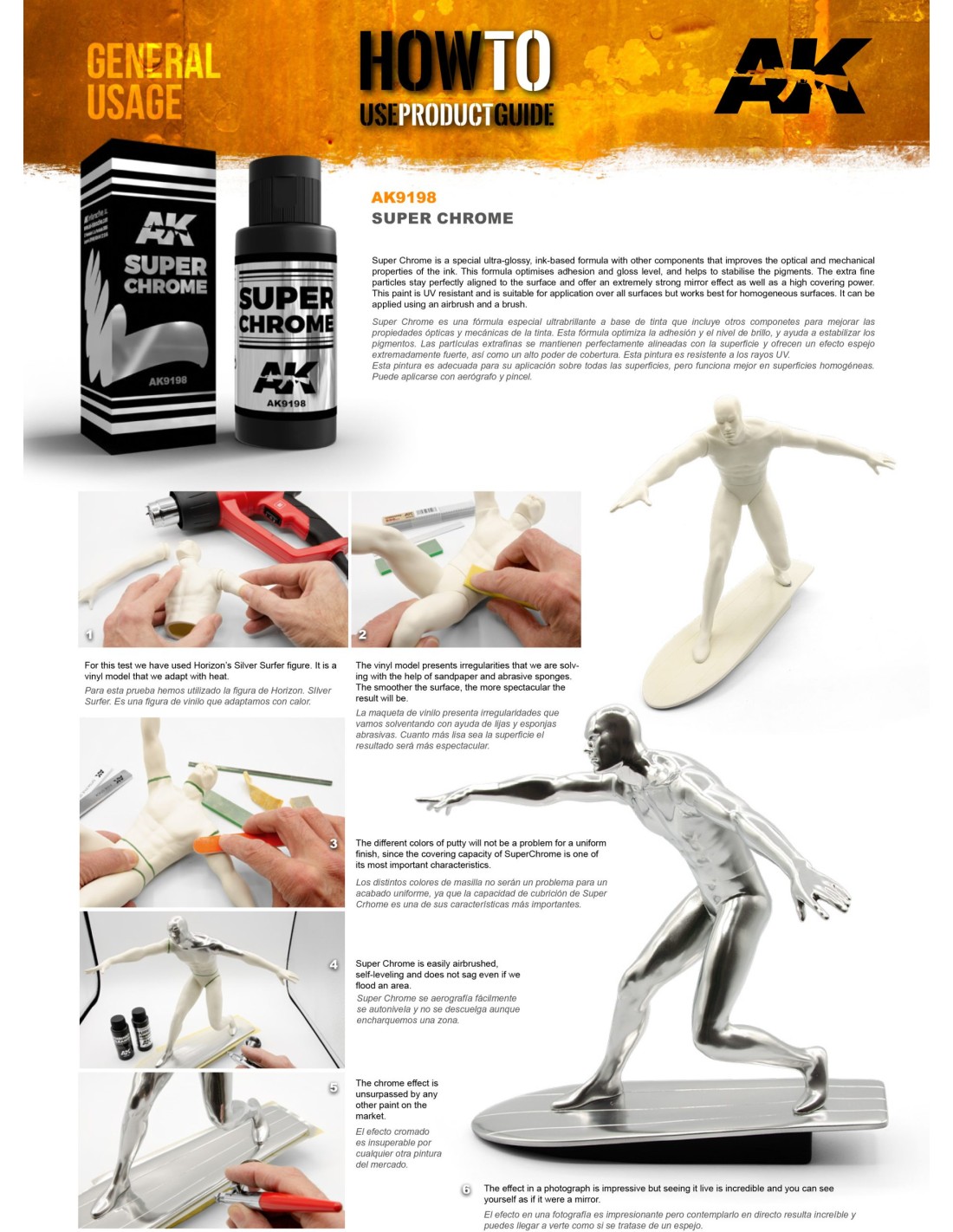 Super chrome es una tinta especial ultrabrillante a base de alcohol que incluye un componente de resina que mejora las propiedades ópticas y mecánicas de la tinta.