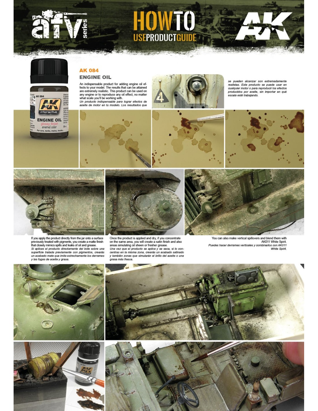 Un producto indispensable para hacer efectos de aceite de motor. El aspecto es extremadamente realista y puede ser usado en motores de todas las épocas y escalas.