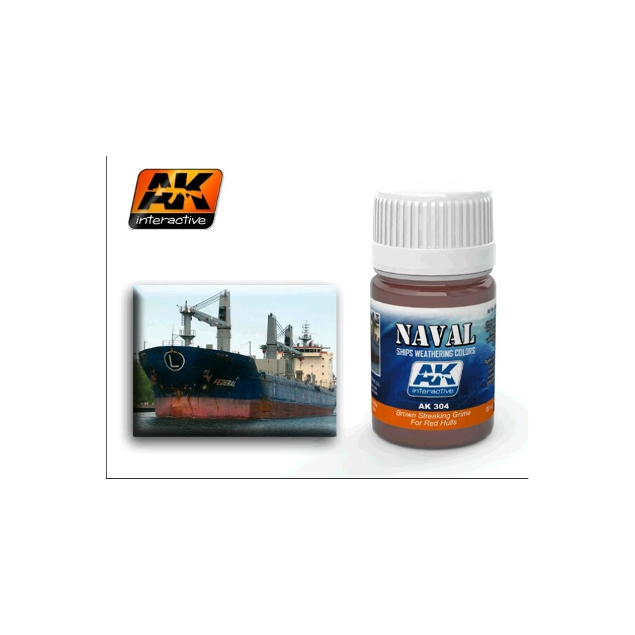 Con este producto en esmalte el modelista podrá representar fácilmente los chorretones de suciedad en cascos de barcos pintados en rojo imprimación. También se puede usar en otras temáticas como por ejemplo el casco de un tanque.