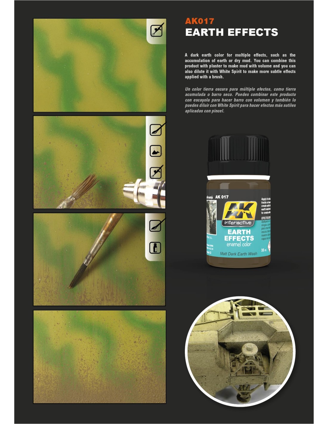 Lavados esmalte para hacer lavados de efectos naturales, como polvo, tierra oscura o barro fresco. Solamente aplica el producto en tu tanque, ruedas, orugas y chasis para conseguir los efectos más realistas. También los puedes mezclar con escayola para hacer barro con un poco de volumen y textura.