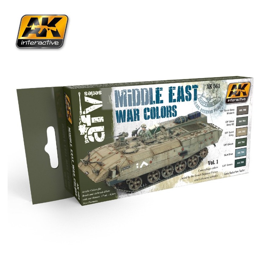 Este set contiene 6 pinturas acrílicas especialmente diseñadas para pintar los vehículos de Oriente Medio, IDF y colores del Líbano. Volumen 1. Los colores han sido cuidadosamente estudiados y diseñados por historiadores y expertos militares.