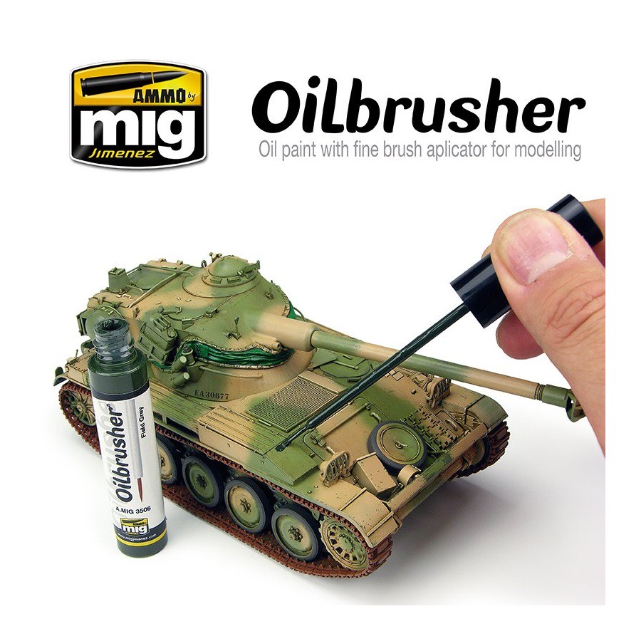 El nuevo OILBRUSHER es el producto definitivo y revolucionario para el modelismo. OILBRUSHER contiene pintura al óleo de alta calidad especialmente diseñada para el modelismo, con una disolución perfecta para ser aplicado directamente desde el bote. El tapón incorpora un exclusivo pincel de alta precisión para aplicar el color directamente en tu modelo, sin necesidad de depositar el óleo en un cartón o paleta, evitando así que se seque o se gaste innecesariamente. Además, el moderno envase lleva incorporado un dosificador limpiador que retira del pincel el exceso de color, dejando sólo la cantidad exacta en la punta.