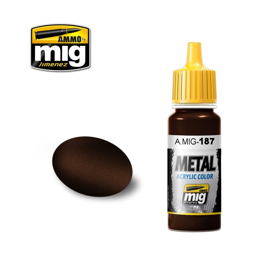 El calor en superficies metálicas, como tubos de escape, motores o toberas de aviones, crea un aspecto muy característico. Este color metálico recrea con precisión este efecto de manera realista, haciéndolo esencial para vehículos militares, aviones, Mechas, vehículos civiles y mucho más. Se recomienda usar en combinación con otros colores AMMO acrílicos metálicos para crear una variedad de efectos de metal. Color real con una fórmula optimizada para obtener el máximo rendimiento con pincel y con aerógrafo para conseguir el color adecuado en nuestras maquetas. Cada bote incluye un agitador de acero inoxidable para facilitar una mezcla más rápida y homogénea. Presentación en botes de 17mL. Soluble en agua, sin olor y no tóxico. Agite bien antes de cada uso. Recomendamos A.MIG-2000 Acrylic Thinner para una correcta disolución. Secado completo en 24h.