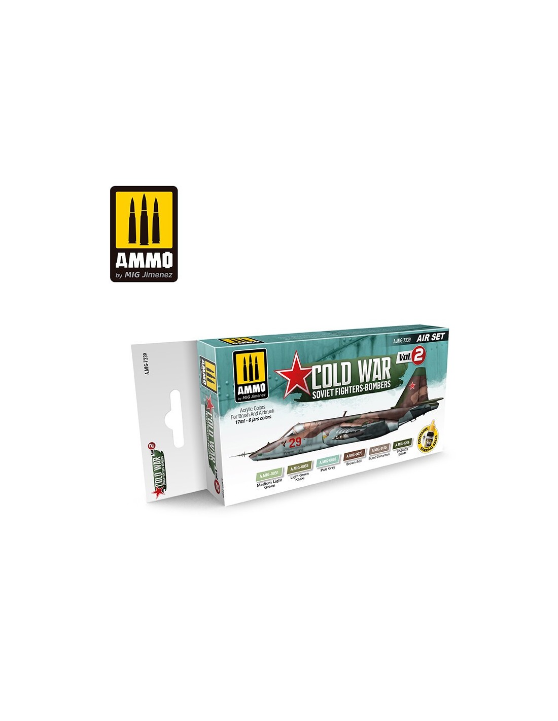 Los colores son exactos, aunque ligeramente aclarados para compensar el efecto escala de cualquier maqueta. Esta pintura presenta una fórmula optimizada para obtener el máximo rendimiento tanto con pincel como con aerógrafo. Cuatro colores en envases de 17ml. Agite bien antes de cada uso. Cada bote incluye un agitador de acero para facilitar el mezclado de la pintura. Soluble en agua, sin olor y no tóxico. Recomendamos A.MIG-2000 Acrylic Thinner para una correcta disolución. Seca completamente en 24h.