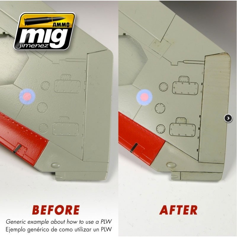 Set de lavados para líneas de panel de aviones y jets en metal natural. Incluye 3 colores de la línea Panel Line Wash que nos permitirán perfilar fácilmente dichos aviones con diferentes intensidades en cada área. También útiles para motores cohete y sistemas hidráulicos. Incluye los colores: A.MIG-1602 PLW Deep Grey A.MIG-1617 PLW Blue Black A.MIG-1618 PLW Deep Brown