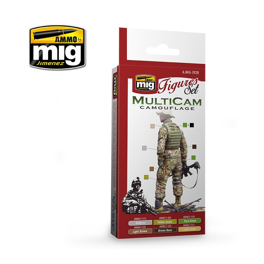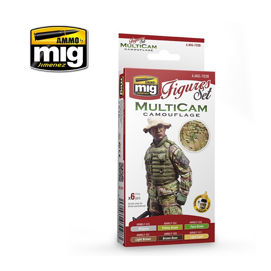 Pinturas acrílicas de alta calidad diseñadas para hacer sencilla la pintura de nuestras miniaturas. Este pack incluye los 6 colores necesarios para pintar el uniforme Multicam empleado por el ejército de los Estados Unidos entre otros en la actualidad. Los colores están seleccionados tras una rigurosa investigación uniformológica para poder decorar las miniaturas, resaltar el volumen y definir los detalles.