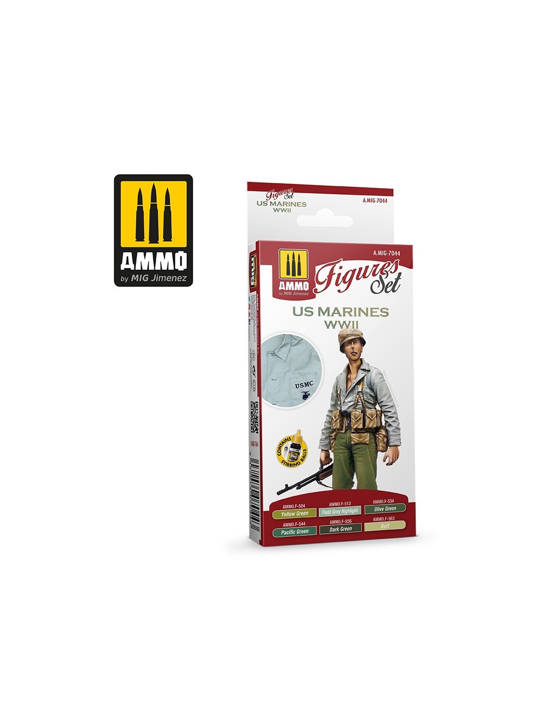 Incluye diversos colores para poder representar los característicos tonos verdosos, tanto de la camisa, como del pantalón, utilizados en la contienda. Los colores están seleccionados tras una rigurosa investigación uniformológica para poder decorar las miniaturas, resaltar el volumen y definir los detalles.