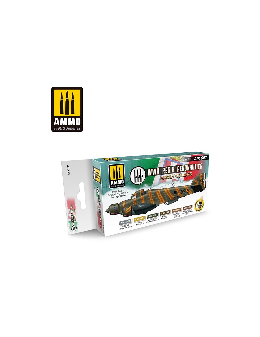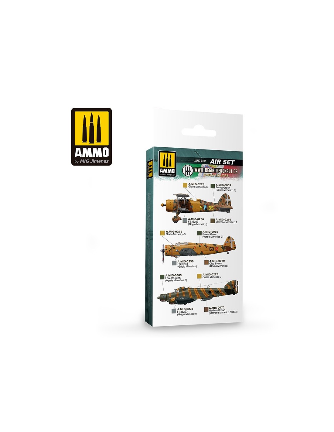 Este set incluye pinturas para representar los esquemas de gran parte de los aviones de la Regia Aeronáutica durante los comienzos de la Segunda Guerra Mundial.
