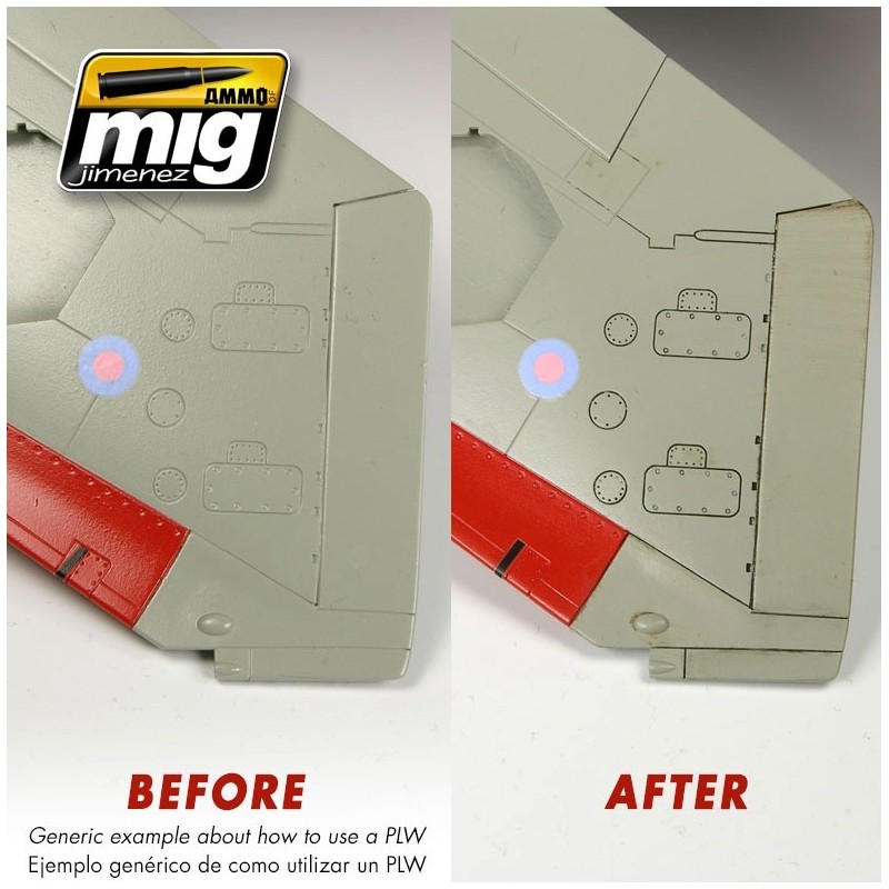 Set de lavados para líneas de panel de cazas Soviéticos durante la Segunda Guerra Mundial. Cada bote incluye un agitador de acero inoxidable para facilitar una mezcla más rápida y homogénea. Incluye 3 colores de la línea Panel Line Wash que nos permitirán perfilar fácilmente dichos aviones: A.MIG-1612 PLW Green Brown, perfecto para el camuflaje verde. A.MIG-1615 PLW Stone Grey for Black, para el camuflaje negro. A.MIG-1619 PLW Blue Dirt, para las zonas gris-azuladas de las superficies inferiores.