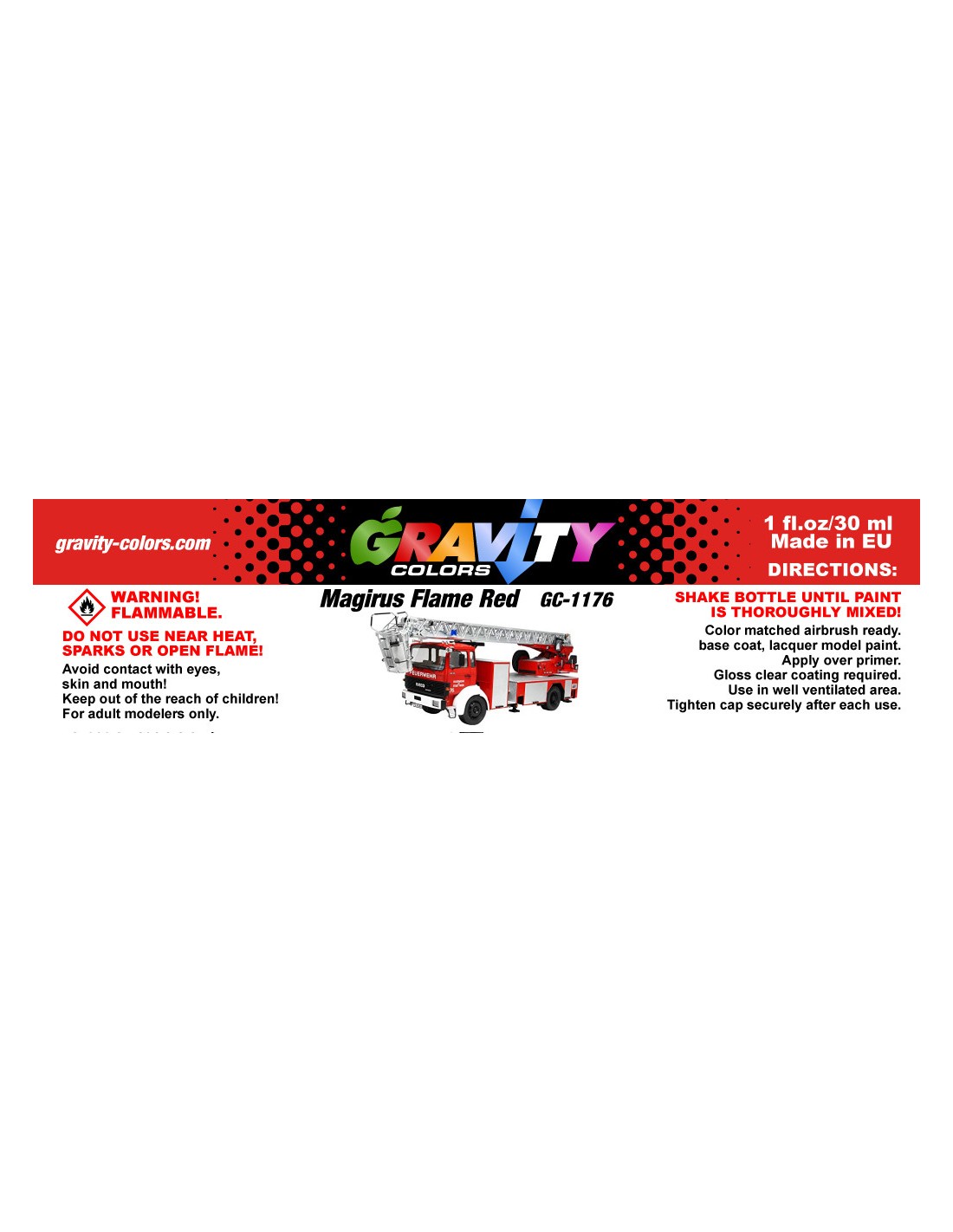 Recomendamos utilizar una presión de aire baja, entre 15 y 20 PSI (1,0 y 1,4 BAR) al pulverizar las pinturas Gravity Colors. Esto es sólo una recomendación. La presión óptima es única para cada usuario, y depende del diámetro de la boquilla, la distancia de pulverización o la velocidad, entre otros factores.