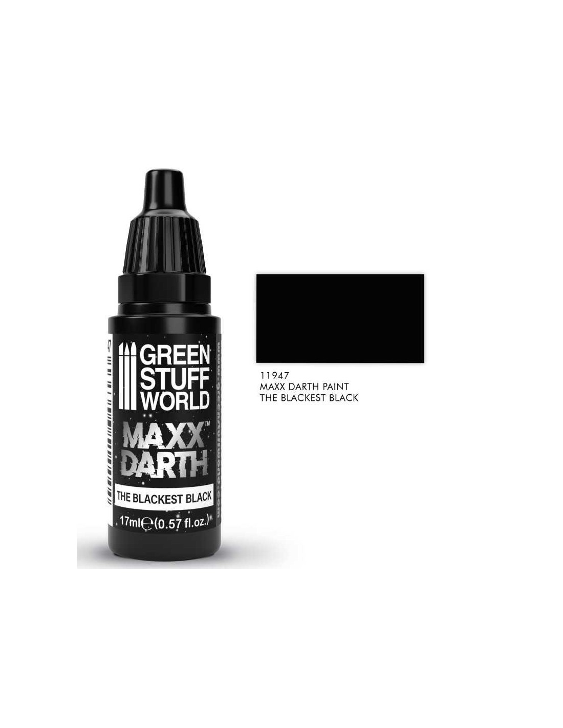 Da rienda suelta a tu creatividad con nuestra pintura Maxx Darth, un revolucionario pigmento super negro que destaca como la pintura negra más oscura a nivel mundial. Fabricada por Green Stuff World, cuenta con una excepcional tasa de absorción de la luz del 98,9%, superando a cualquier otra del mercado. Su alta cobertura y su acabado ultramate la convierten en la elección preferida de los artistas que buscan una profundidad y una fijación inigualables en sus creaciones.